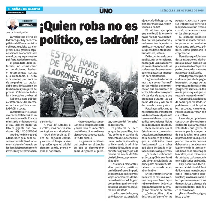 Perú tiene que fulminar de sus instituciones, a ladrones que llevan años en los puestos más altos. Y que han perfeccionado los métodos para robarle al Estado.