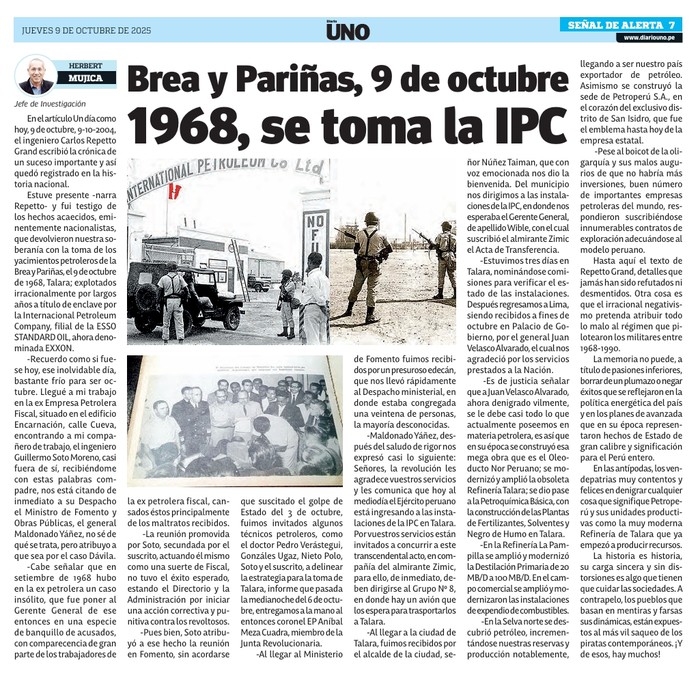 Brea y Pariñas, 9 de octubre 1968, se toma la IPC